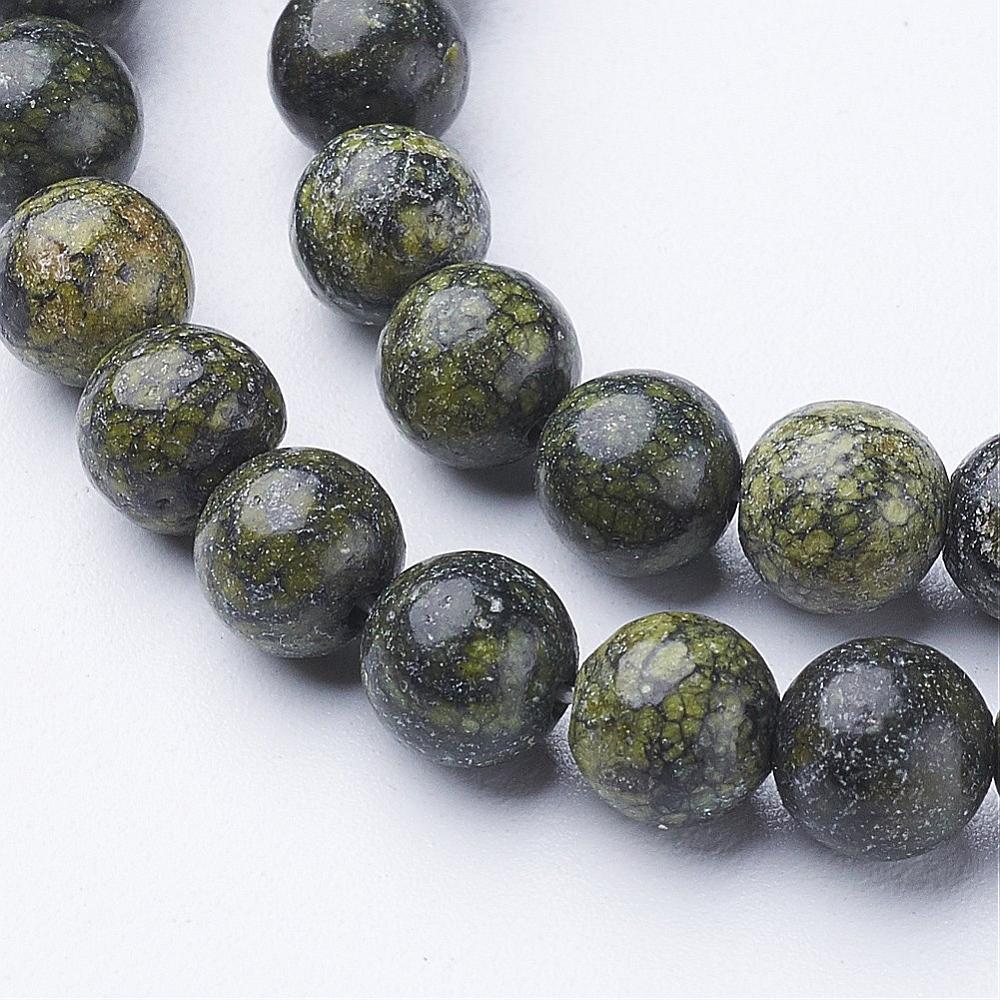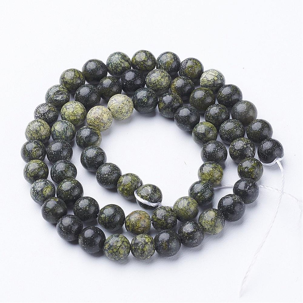 חרוזי אבן סרפנטין/גרין לייס טבעיים – עגולים, ירוק כהה, 6 מ״מ - כ-40 ס"מ בשורה