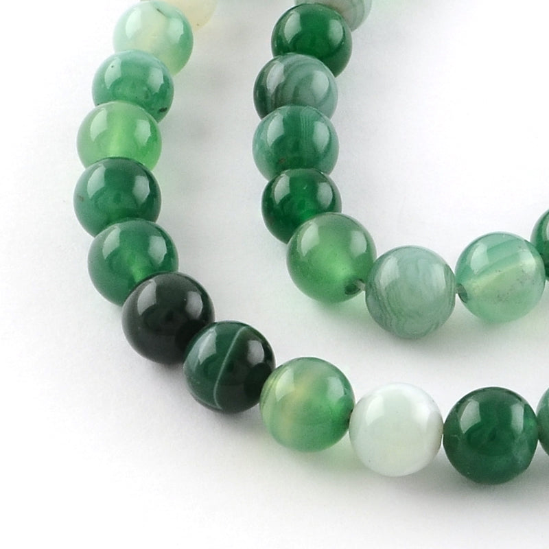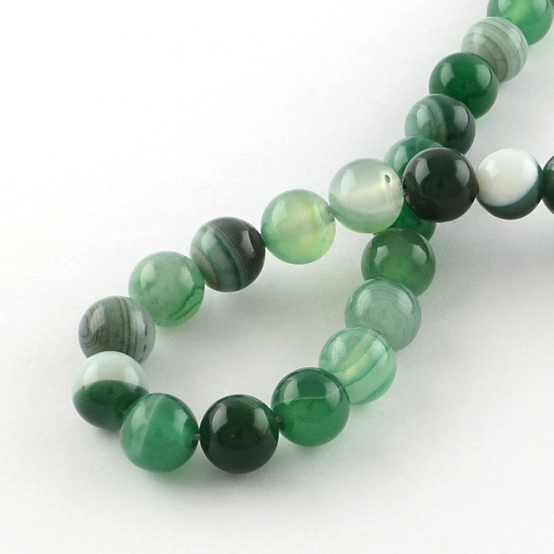 חרוזי אגט מפוספס טבעיים – עגולים, צבועים, ירוק ים כהה, 6 מ״מ - כ-37 ס"מ בשורה