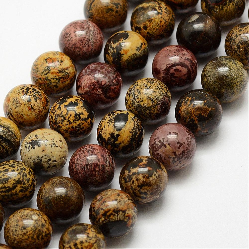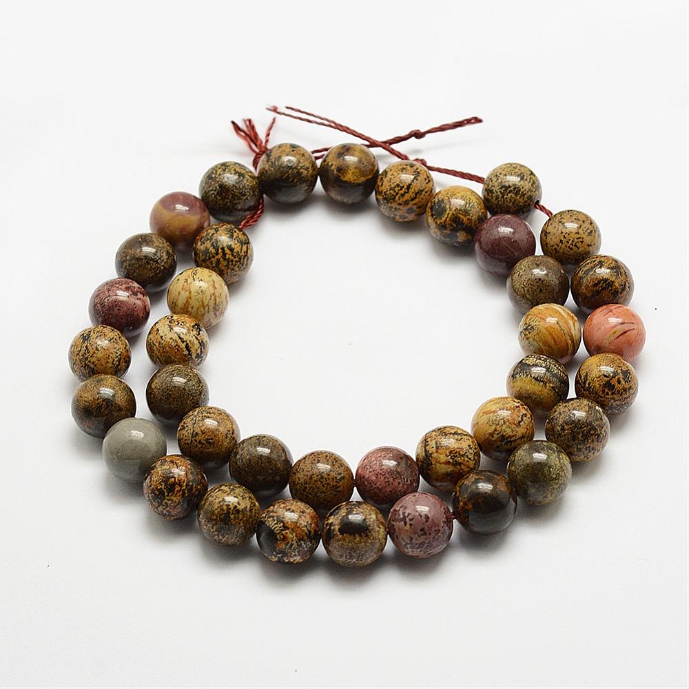 חרוזי ג'ספר דנדריטי טבעיים (Dendritic Jasper), ג'ספר צ'והואה (Chohua Jasper), עגולים, 6 מ"מ, חור: 1 מ"מ, כ-62 חרוזים למחרוזת, 39 ס"מ