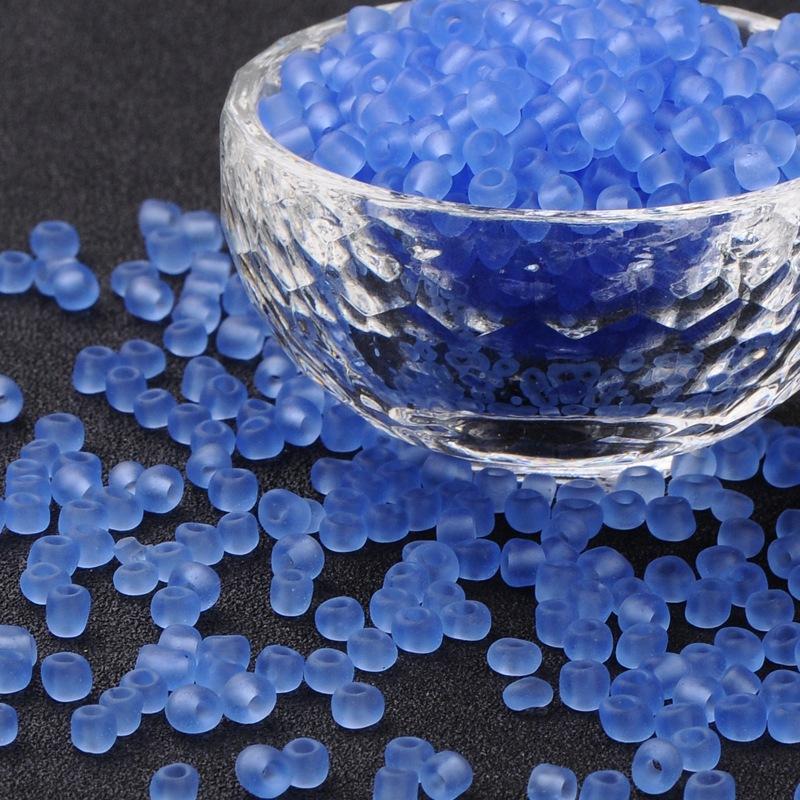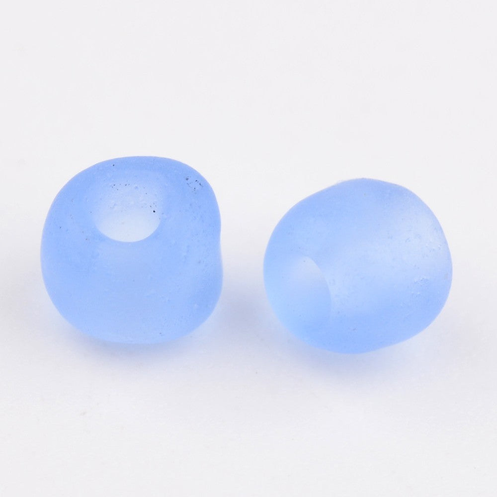 חרוזי זכוכית עגולים בצבע כחול סגלגל בהיר מט. מתאימים לחריזה, צמידים, שרשראות ופרויקטי DIY, להוספת ברק ייחודי ונגיעה צבעונית לכל יצירה.