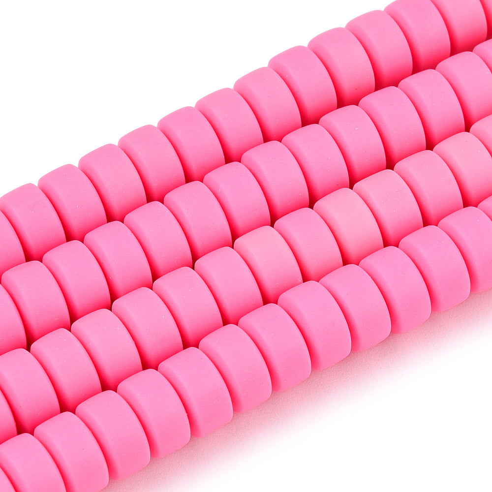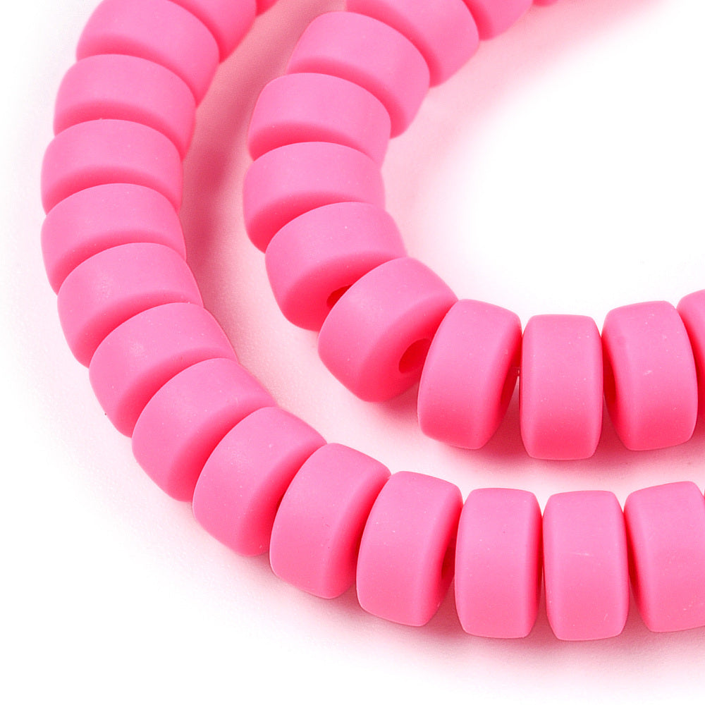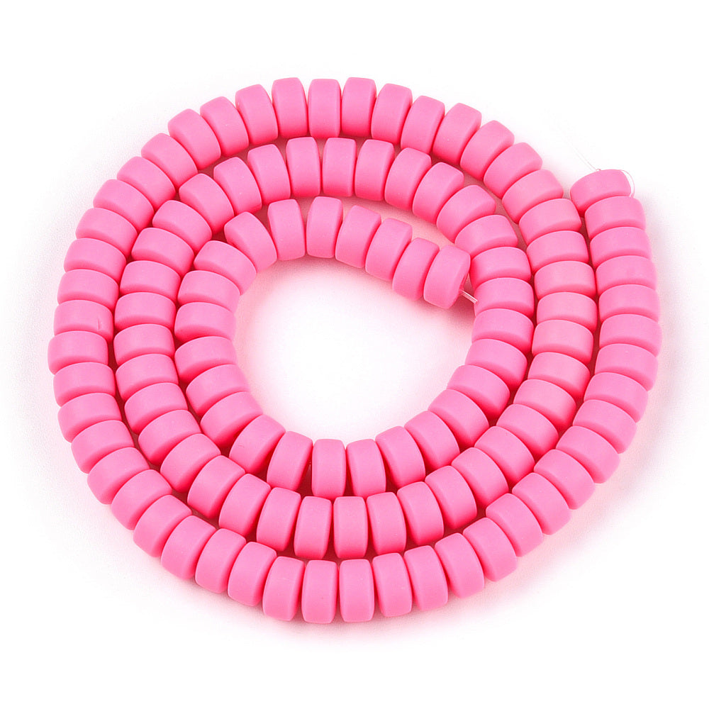 חרוזי פולימר שטוחים בעבודת יד – בצבע ורוד עז