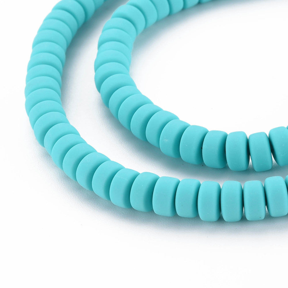 חרוזי פולימר שטוחים בעבודת יד – בצבע טורקיז