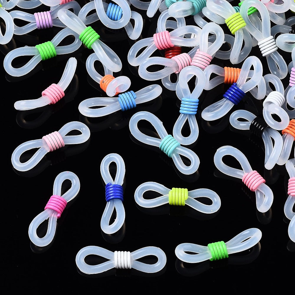 מחזיקי סיליקון למשקפיים – עם מחברי מתכת צבועים, מיקס צבעים, 50 יחידות