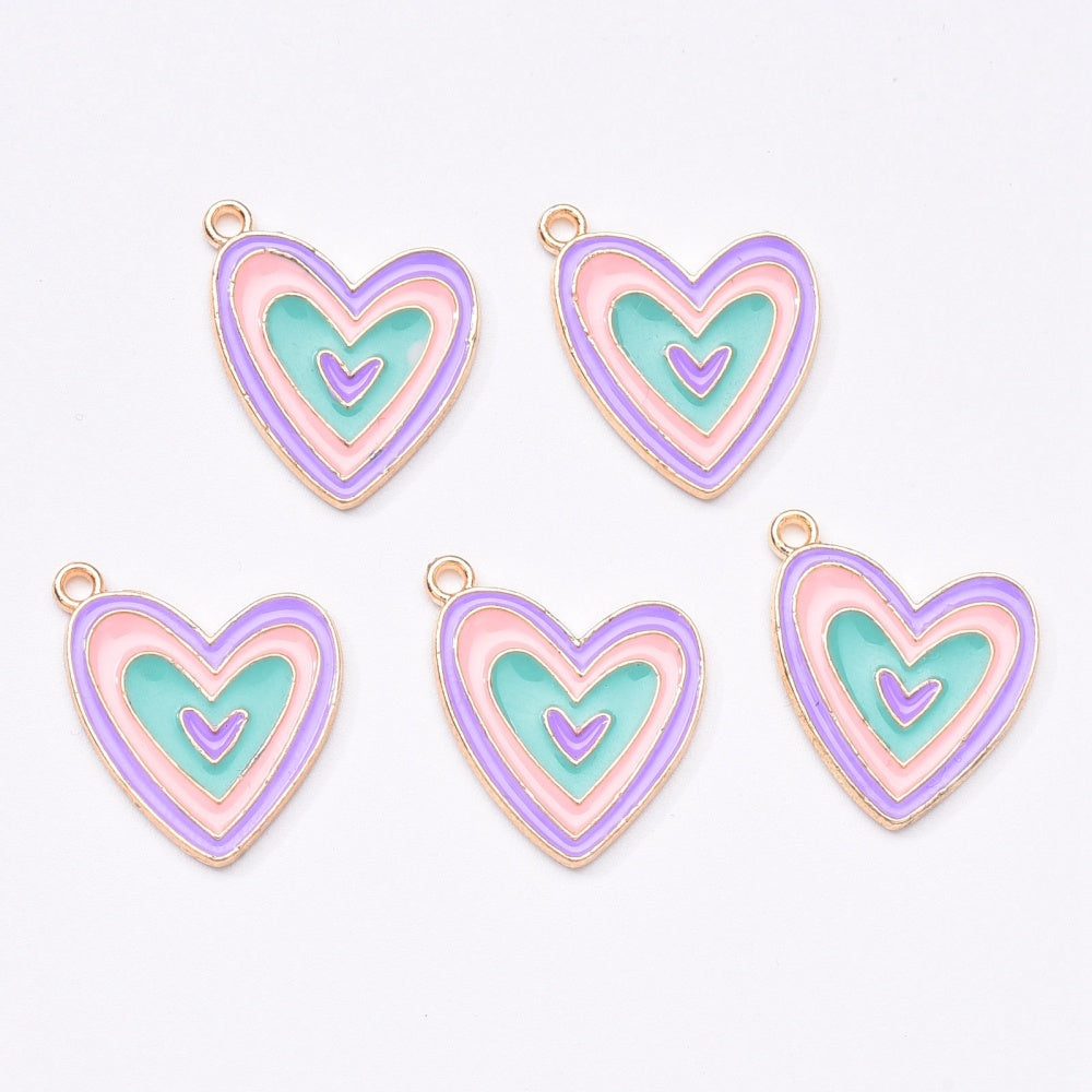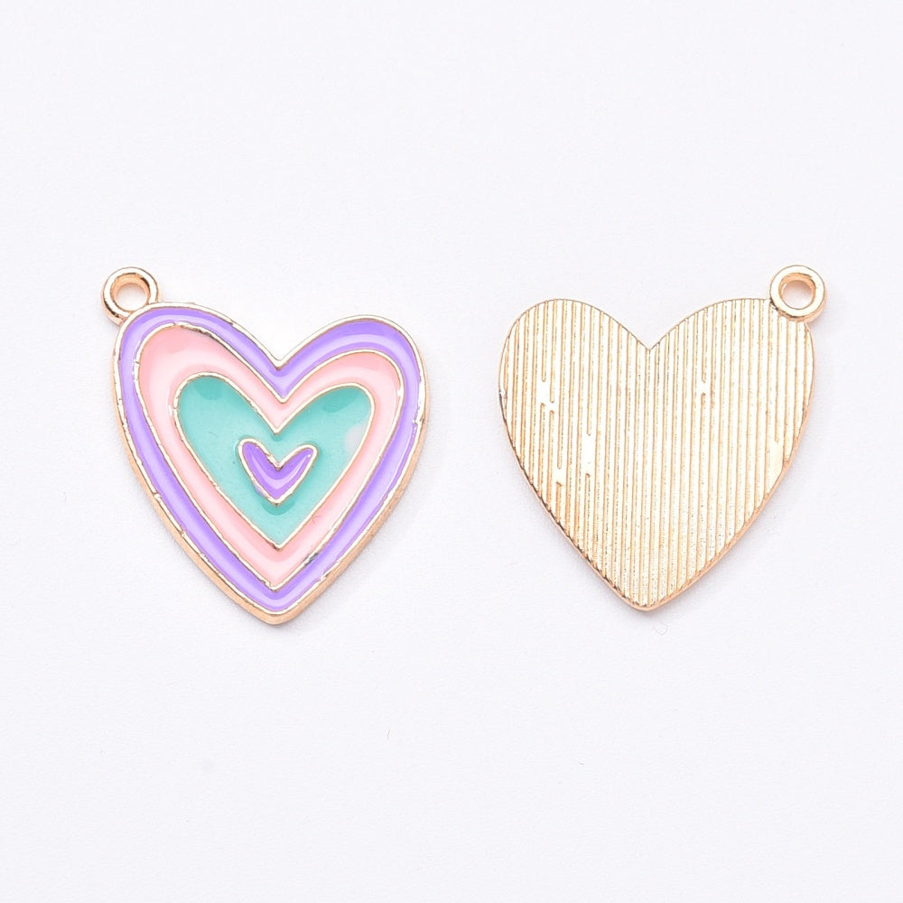 תליון אמייל צבעוני בצורת לב 19 מ"מ ציפוי זהב