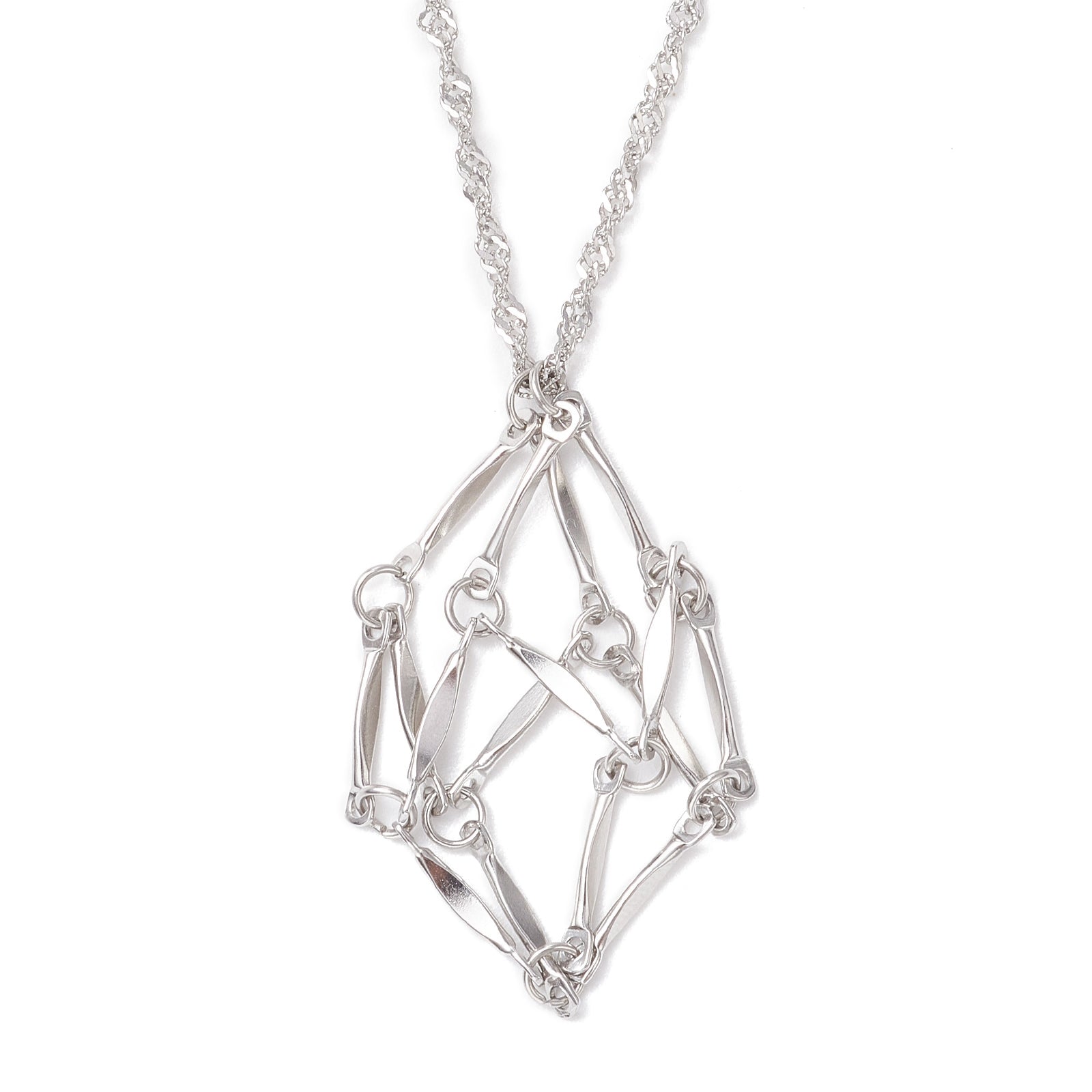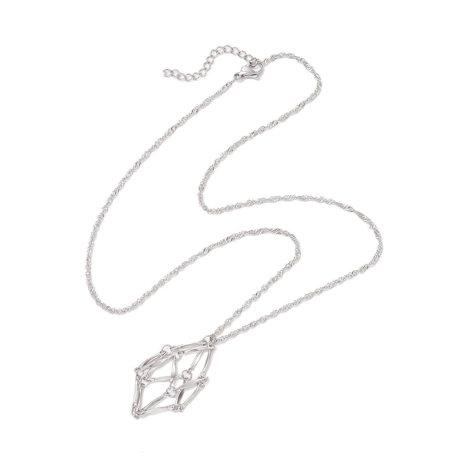 שרשרת סטיינלס סטיל בצבע פלדת אל-חלד, עם תליון שקית מקרמה ריק להרכבה