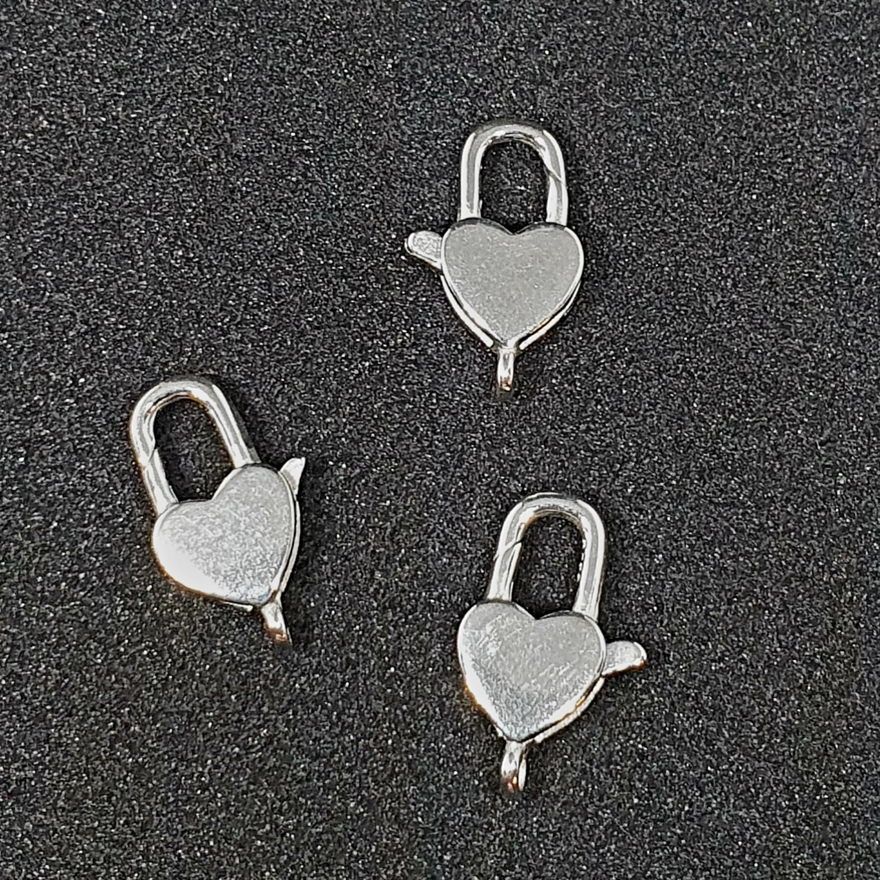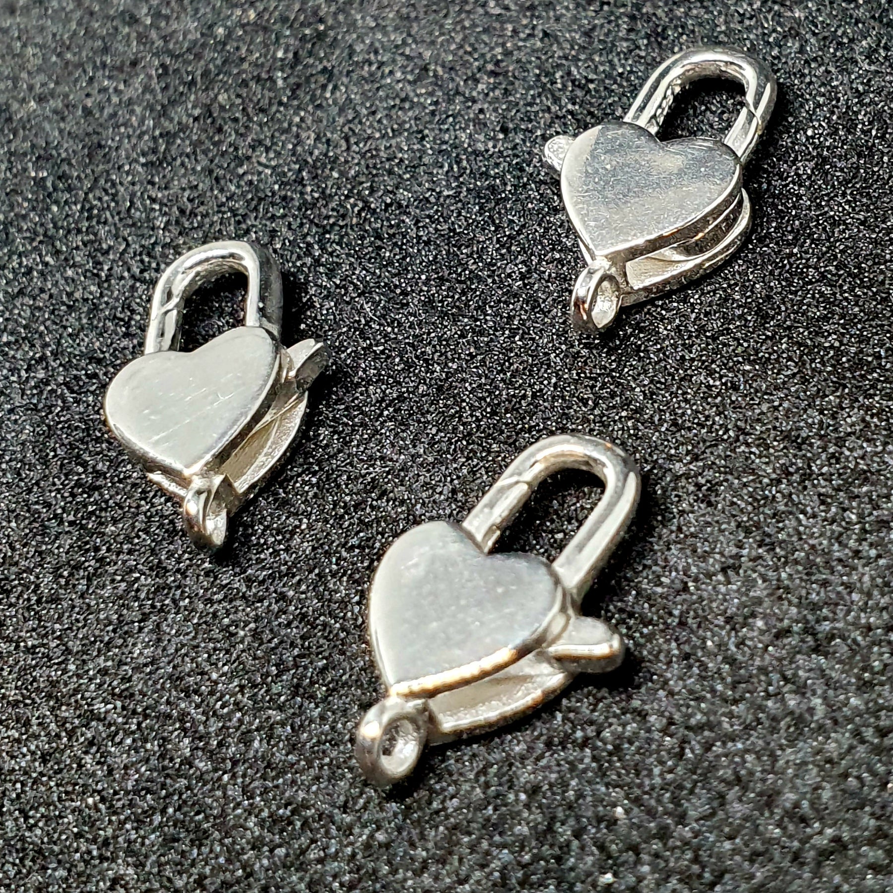 סוגר לובסטר כסף 925 אמיתי, צורת לב, 13 מ"מ, חור 1 מ"מ, 1 יחידה